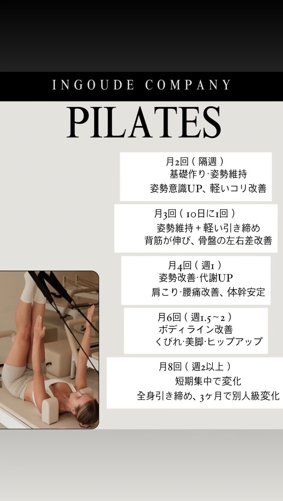 姿勢改善はもちろん、ボディラインの引き締めや、肩こり・腰痛の緩和にも効果的。美しく、しなやかな身体づくりを目指したい方におすすめです。